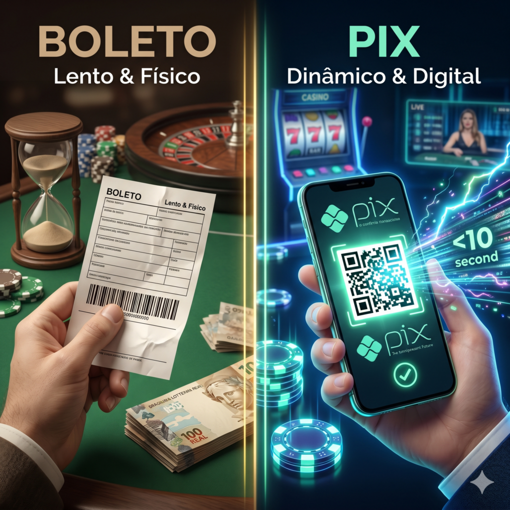 O confronto entre o boleto e o PIX no cenário dos cassinos online em 2026 é, na verdade, um embate entre o passado sólido e o futuro onipresente. O PIX revolucionou a forma como o brasileiro lida com o dinheiro, e no iGaming ele se tornou o padrão ouro. A principal diferença reside na arquitetura da transação. Enquanto o boleto é um documento que precisa ser registrado e compensado por uma câmara de liquidação, o PIX é uma mensagem digital de transferência de valor que ocorre em menos de dez segundos.
