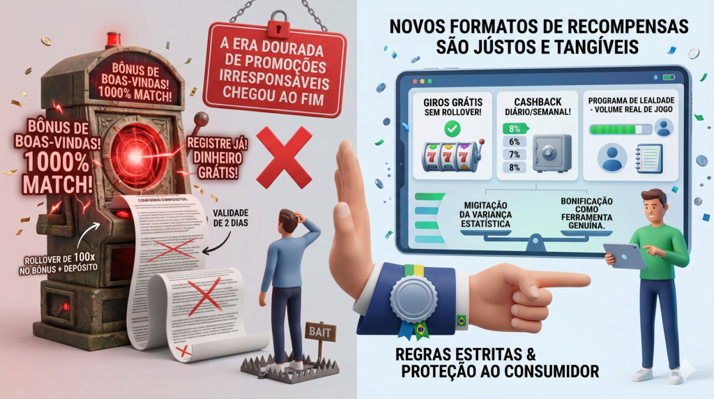 O ambiente normativo introduziu restrições severas às práticas comerciais agressivas. As diretrizes recentes impõem limites rigorosos sobre a distribuição de bônus, publicidade e estruturação de programas de fidelidade. É estritamente proibida a oferta de bônus de boas-vindas que configurem “dinheiro grátis” sem requisitos de aposta (rollover) auditáveis. As campanhas publicitárias estão banidas de horários comerciais na televisão aberta e não podem utilizar influenciadores digitais que tenham público predominantemente menor de idade. Além disso, os programas de fidelidade devem oferecer transparência absoluta sobre as métricas de conversão de pontos, impedindo termos e condições ocultos ou ambíguos. A utilização de cartões de crédito para depósitos foi totalmente vetada, visando frear o endividamento familiar.