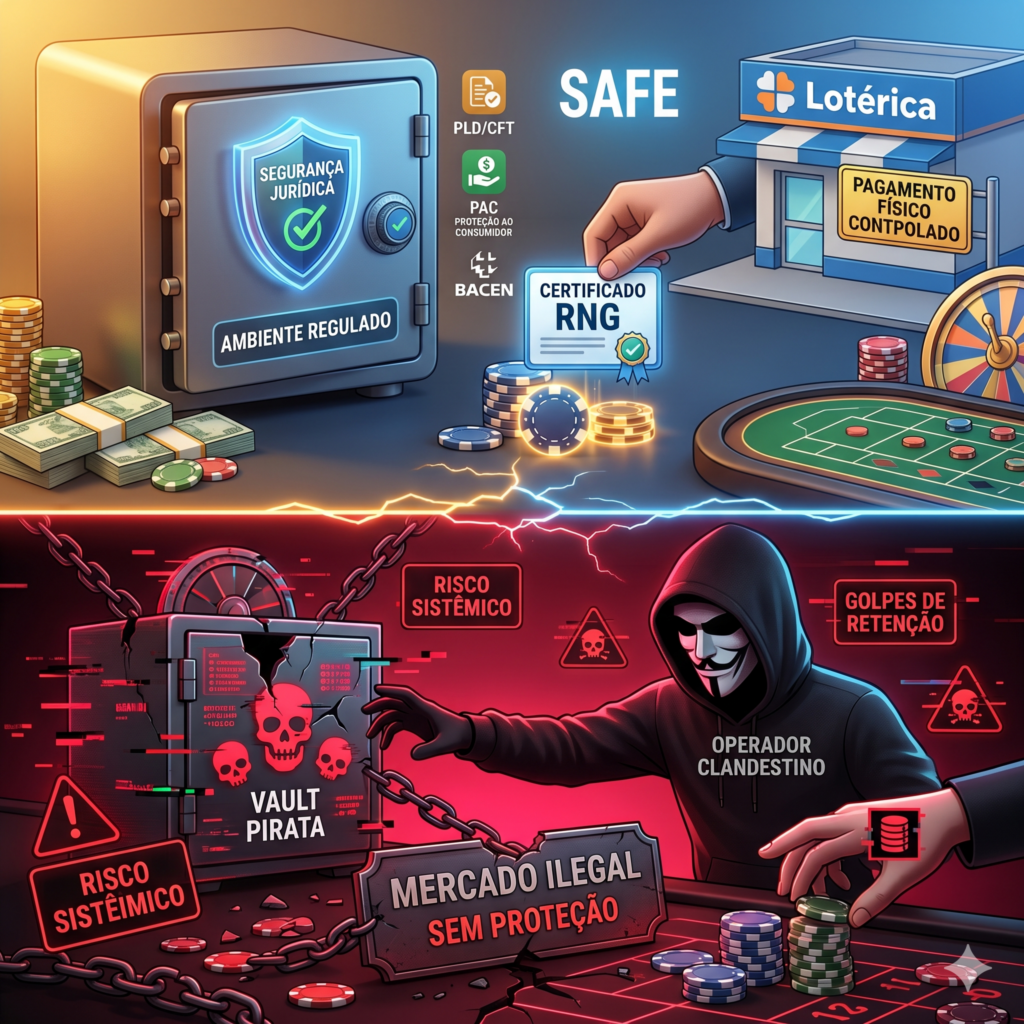 Essas plataformas operantes no mercado negro, frequentemente estruturadas para aceitar exclusivamente criptomoedas não rastreáveis, seduzem o investidor com a promessa de anonimato absoluto, isenção total de impostos e retornos matemáticos irreais. O grande risco sistêmico dessa fuga desenfreada de capitais é que o apostador abdica de forma voluntária de qualquer mecanismo de proteção jurídica institucional. Ao operar na ilegalidade, o usuário fica inteiramente vulnerável a golpes de retenção injustificada de saldo, roubo de dados pessoais sensíveis e exposição a algoritmos piratas programados explicitamente para o confisco do seu patrimônio sem qualquer direito a recurso legal ou apelação administrativa.